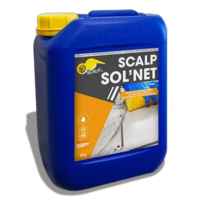 SCALP SOL’NET est nettoyant laitance et voile de ciment de qualité professionnelle qui excelle dans l’élimination des impuretés et des traces de ciment. Ce nettoyant offre ainsi un aspect impeccable à vos sols en béton.